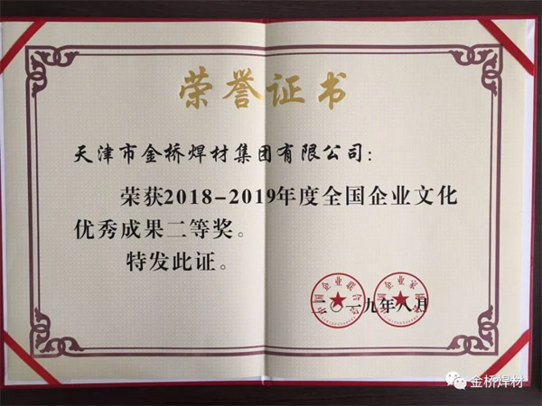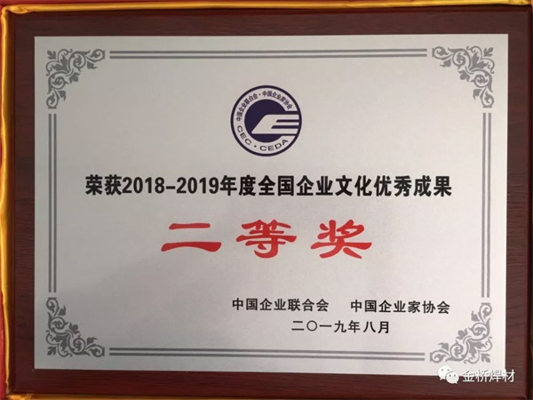 金橋焊材集團(tuán)榮獲“2018-2019年度全國(guó)企業(yè)文化優(yōu)秀成果二等獎(jiǎng)”