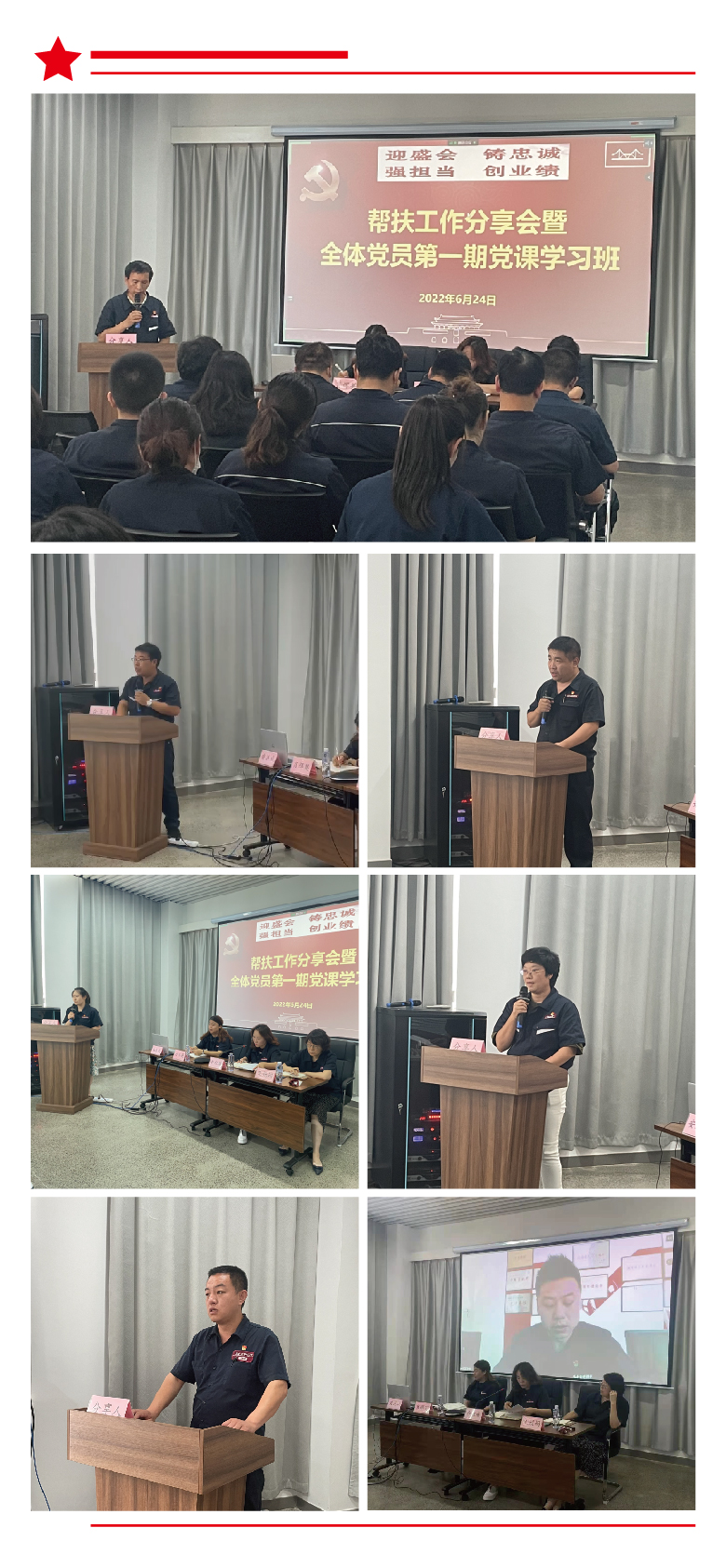 自“迎盛會(huì)、鑄忠誠(chéng)、強(qiáng)擔(dān)當(dāng)、創(chuàng)業(yè)績(jī)”主題學(xué)習(xí)宣傳教育實(shí)踐活動(dòng)開展以來(lái),金橋焊材集團(tuán)黨委各黨支部通過(guò)支部書記講黨課、開展黨員結(jié)對(duì)幫扶等多種形式開展主題黨日活動(dòng),凝聚維護(hù)核心、鑄就忠誠(chéng)的正能量,提振干事創(chuàng)業(yè)、擔(dān)當(dāng)作為的精氣神。6月24日下午80余名黨員參加了線下舉辦的幫扶工作分享會(huì)暨全體黨員第一期黨課學(xué)習(xí)班。