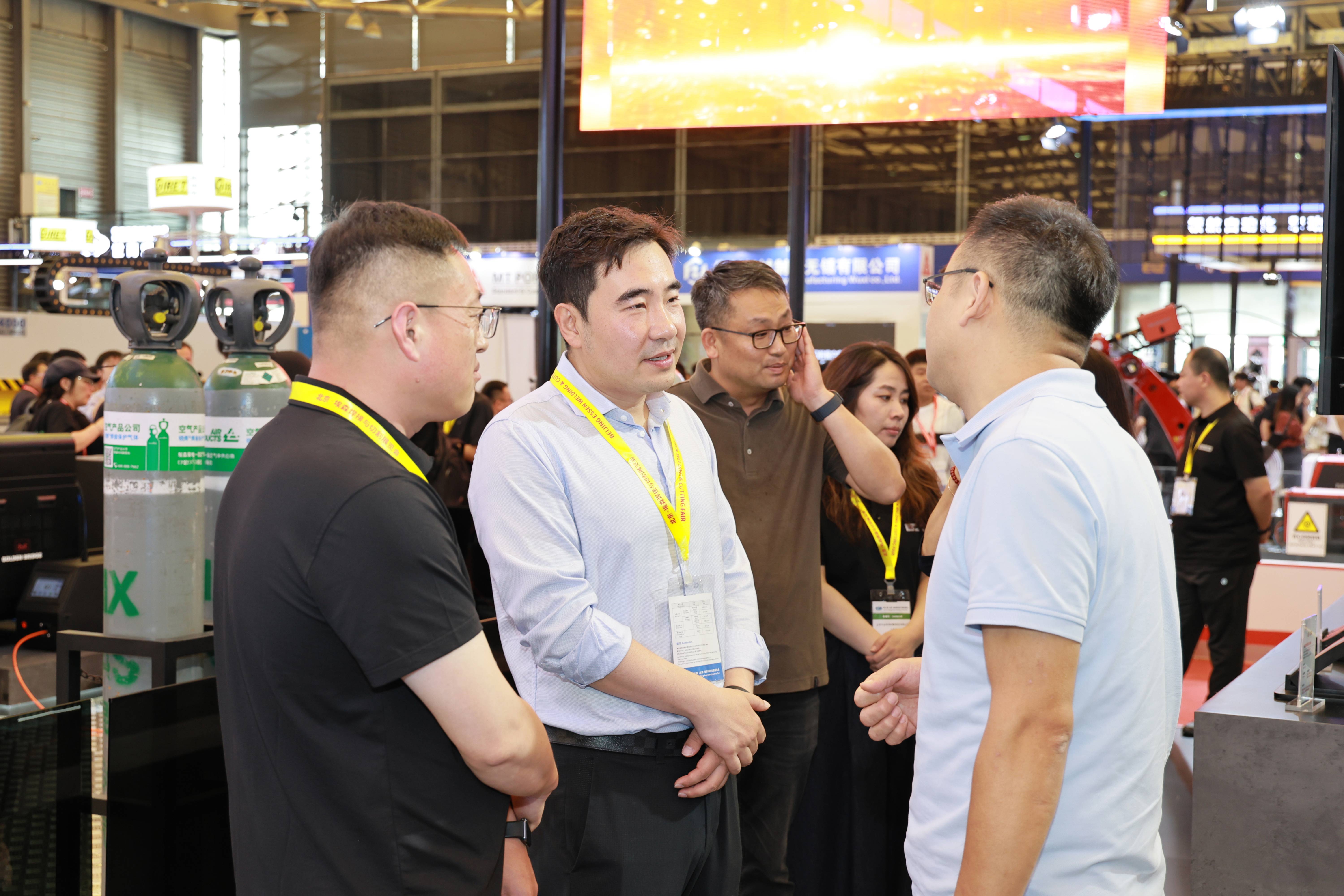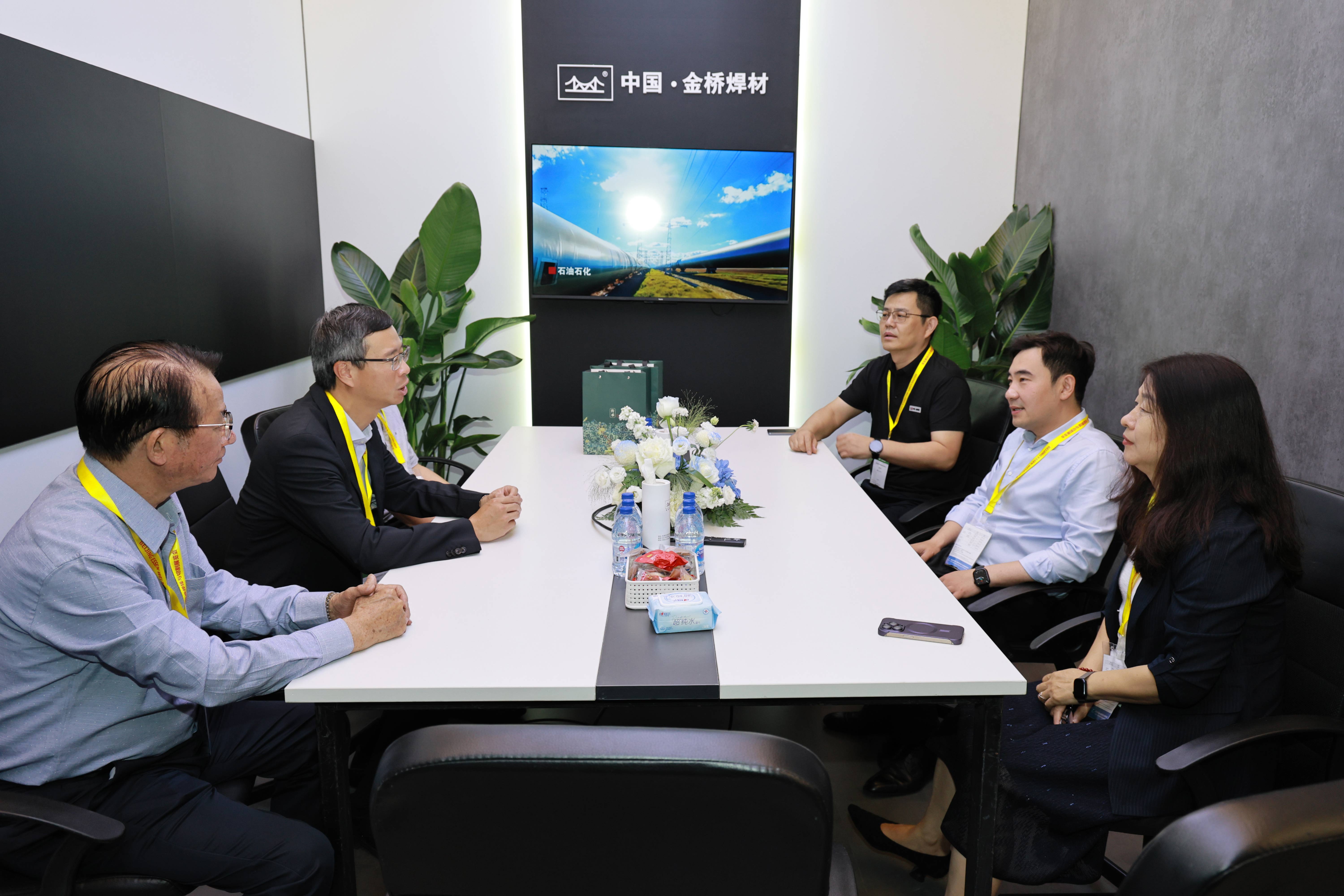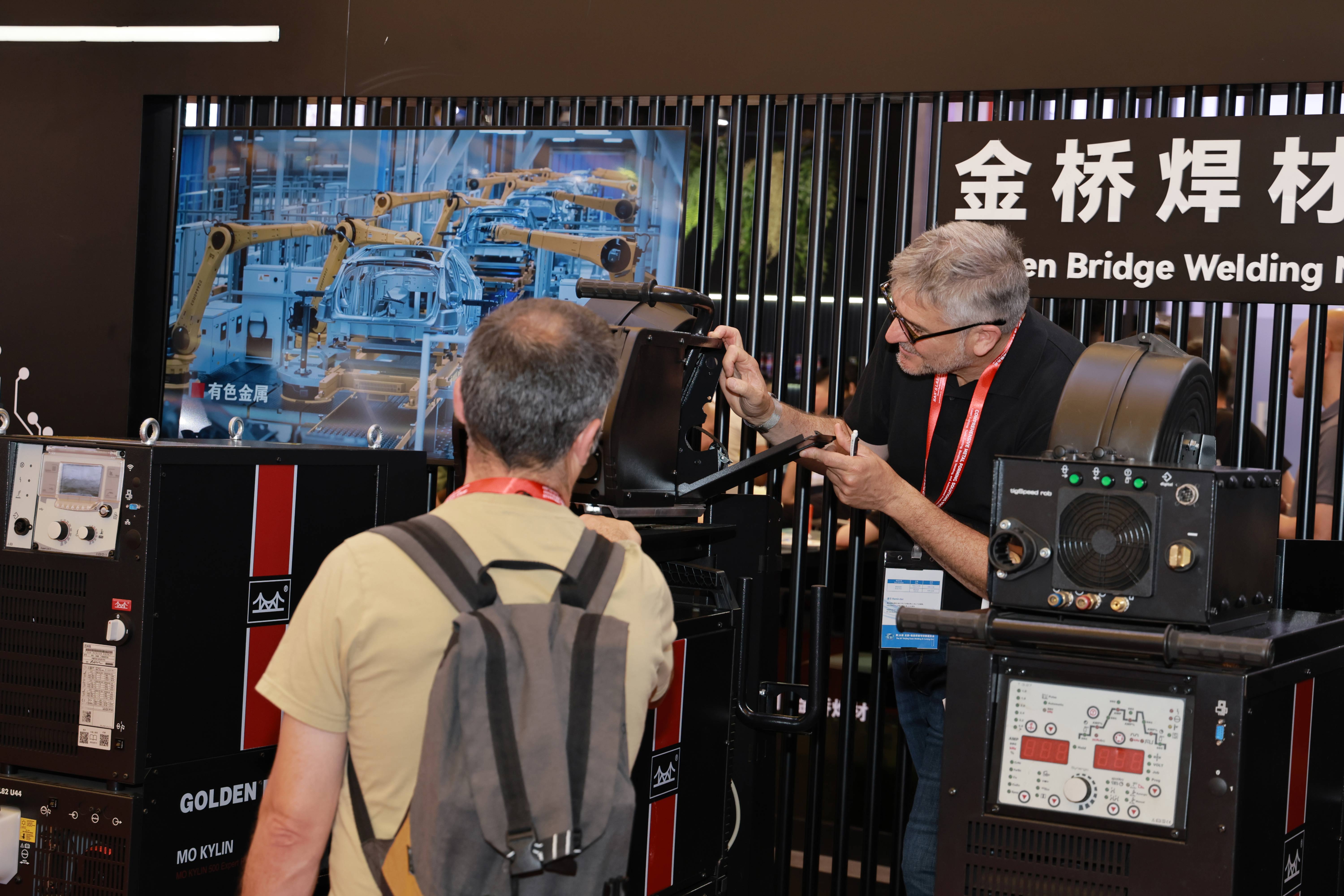 四大行業(yè)展示區(qū)、試焊區(qū)和焊件展示區(qū)人流如織,熱鬧非凡?,F(xiàn)場客戶咨詢了高強鋼焊接工藝涵蓋的方面及熔斷效果、成型效果,鋁合金雙脈沖工藝在汽車底盤等方面的應用等情況。船舶行業(yè)客戶詢問了JQ.YJ503MX-1高效金屬粉芯型藥芯焊絲的產(chǎn)品情況,對產(chǎn)品性能和價格進行了接洽溝通,約定后期可進行試用。家電行業(yè)客戶咨詢了銀釬料產(chǎn)品,表示后續(xù)會大力跟進開發(fā),集團將根據(jù)客戶需求進行工藝改善與優(yōu)化。來自巴西的國際客戶詢問了無鍍銅實心焊絲產(chǎn)品,并對集團高端藥芯焊絲產(chǎn)品密切關(guān)注,表現(xiàn)出進一步合作意向。來自斯洛伐克的老客戶詢問了高端實心焊絲、藥芯焊絲產(chǎn)品及金橋“焊接一體化”服務(wù),表示會繼續(xù)加強合作,促進與金橋焊材的合作共贏。